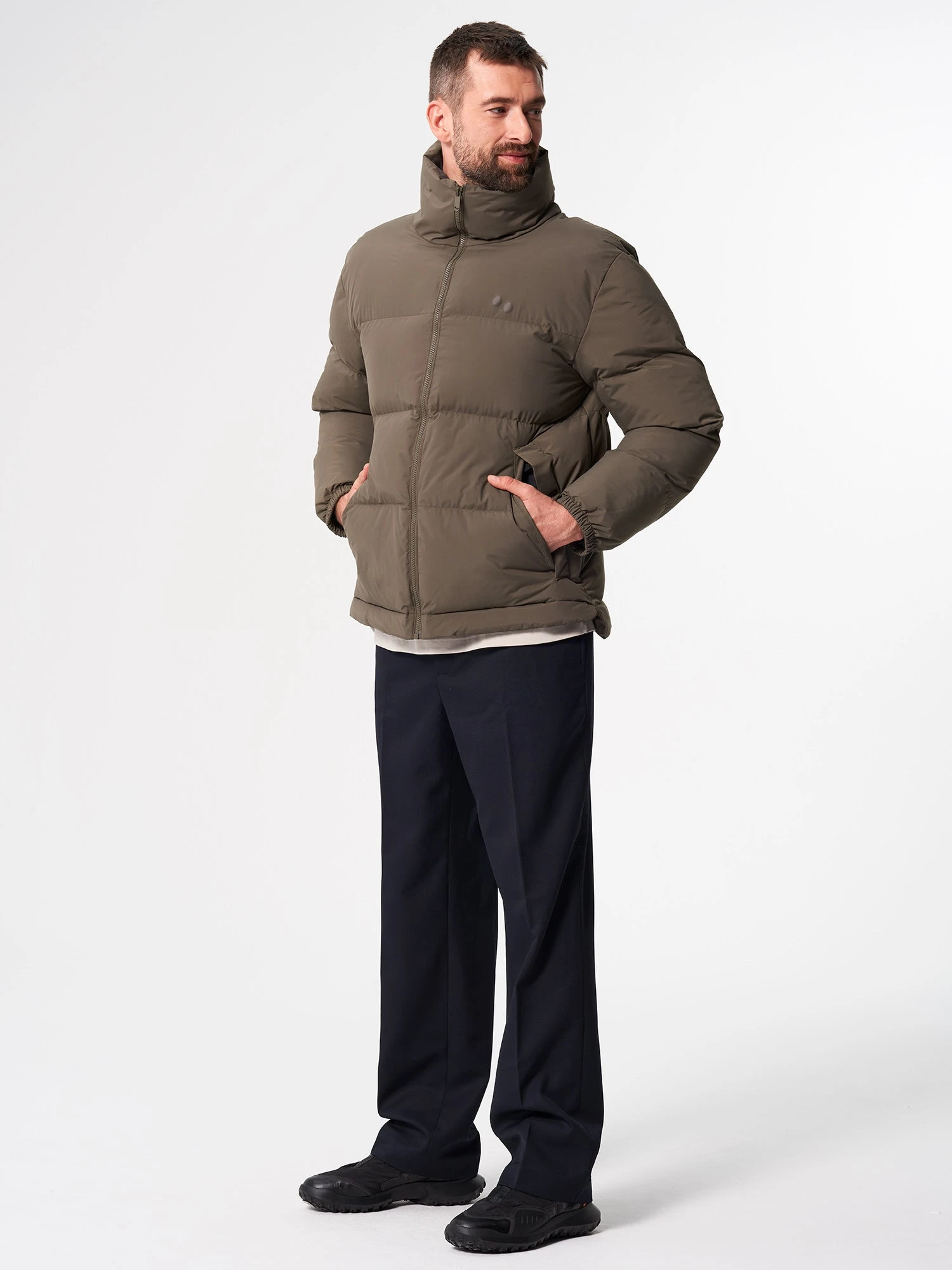 Gemütliche Winter Puffer Jacket. Gemütliches und wärmend dank hoher Funktionalität und warmer Fütterung. Unisex Modell mit cleanem Schnitt. Windfest, leicht und wetterfest. Robust dank 100% recyceltem Nylon Außenmaterterial. Super weiches Lining hält dich warm, bestehend aus 100% recyceltem Polyster und einer pflantenbasierter Membran.